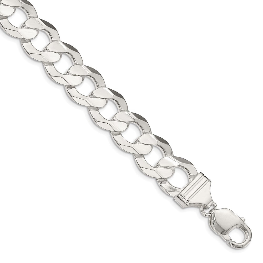 Material: Primary - Purity:925 *| - |* Finish:Polished *| - |* Length of Item:24 in *| - |* Chain Length:24 in *| - |* Chain Type:Curb *| - |* Chain Width:13.8 mm *| - |* Clasp /Connector:Lobster *| - |* Clasp Thickness (Female end):5.8 mm *| - |* Clasp Thickness (Male end):4.1 mm *| - |* Clasp Width (Female end):14.1 mm *| - |* Clasp Width (Male end):9.15 mm *| - |* Material: Primary:Sterling Silver *| - |* Width of Item:13.8 mm *| - |* Product Type:Jewelry *| - |* Jewelry Type:Necklaces *| - |* Sold By Unit:Each *| - |* Necklace Type:Chain Styles *| - |* Gender:Men's *| - |* Profile Type:Concave *| - |* Material: Primary - Color:White *| - |* Edge Type:Beveled