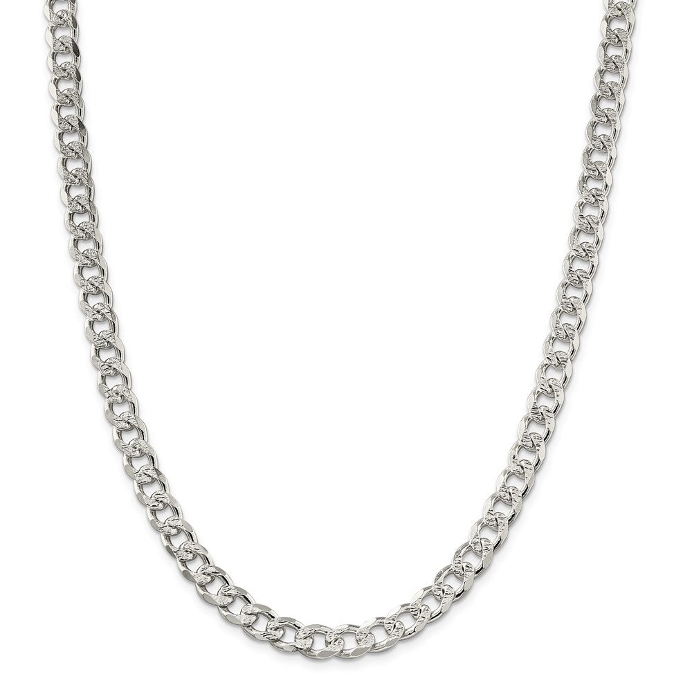 Material: Primary - Purity:925 *| - |* Finish:Polished *| - |* Length of Item:22 in *| - |* Chain Length:22 in *| - |* Chain Type:Curb *| - |* Chain Width:8 mm *| - |* Clasp /Connector:Lobster *| - |* Feature:Solid *| - |* Manufacturing Process:Casted *| - |* Material: Primary:Sterling Silver *| - |* Width of Item:8 mm *| - |* Product Type:Jewelry *| - |* Jewelry Type:Necklaces *| - |* Sold By Unit:Each *| - |* Necklace Type:Chain Styles *| - |* Gender:Men's *| - |* Texture:Pave *| - |* Material: Primary - Color:White