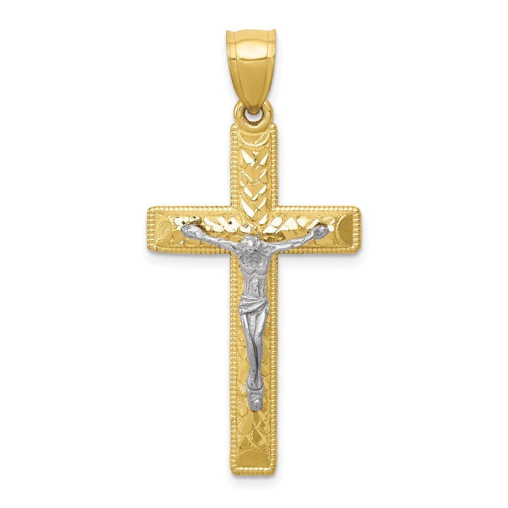 10k Two-tone Diamond Cut Crucifix Pendant-WBC-10K6304