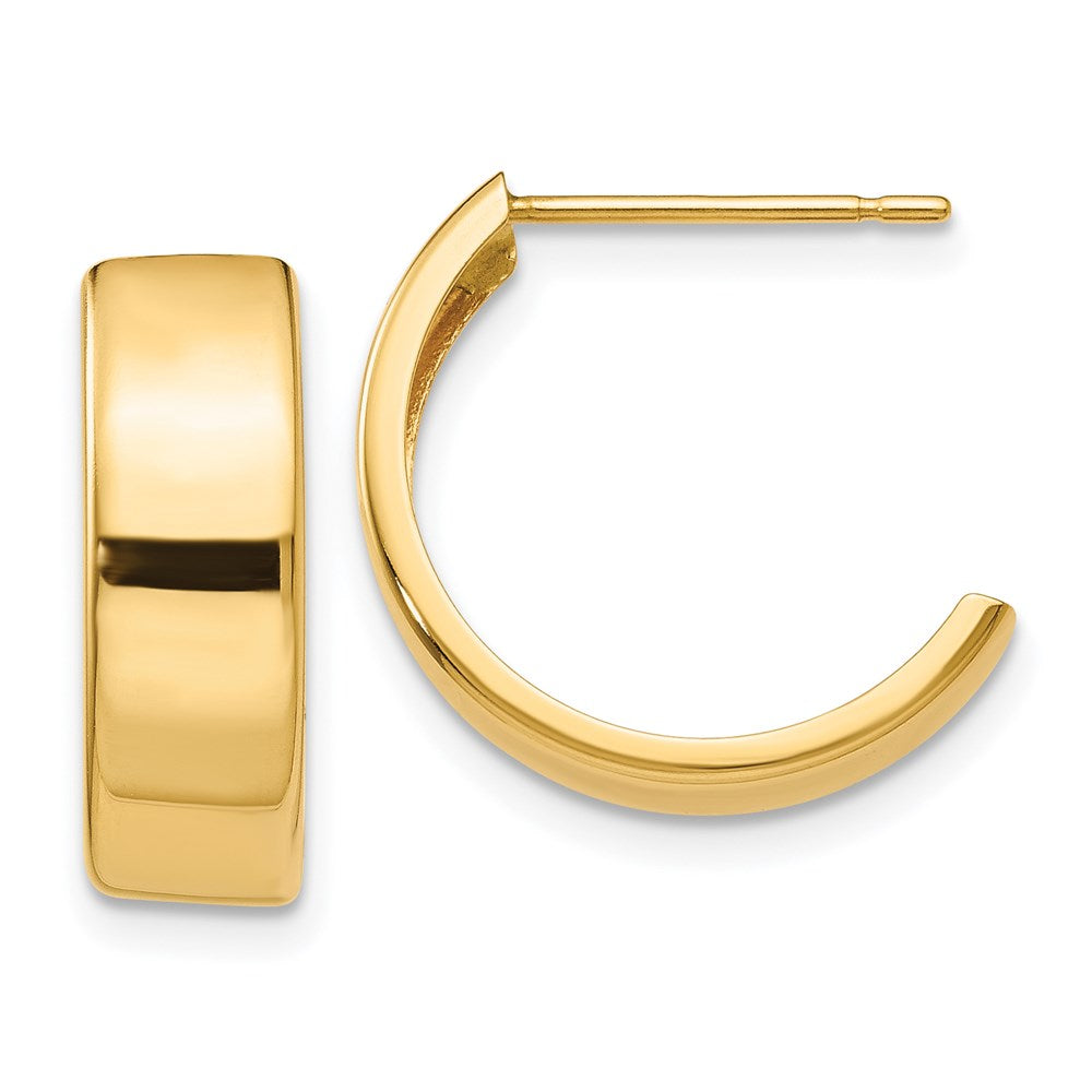 Material: Primary - Purity:14K *| - |* Length of Item:16 mm *| - |* Material: Primary:Gold *| - |* Width of Item:5.5 mm *| - |* Product Type:Jewelry *| - |* Jewelry Type:Earrings *| - |* Sold By Unit:Pair *| - |* Gender:Women's *| - |* Material: Primary - Color:Yellow *| - |* Earring Closure:Post & Push Back *| - |* Earring Type:J-Hoop