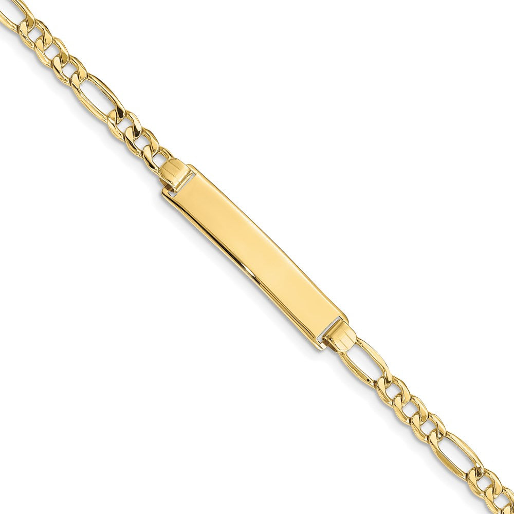 Material: Primary - Purity:10K *| - |* Stone Quantity_1:1 *| - |* Length of Item:8 in *| - |* Stone Setting_1: *| - |* Chain Length:8 in *| - |* Chain Type:Figaro *| - |* Chain Width:4.5 mm *| - |* Charm/Element Length:32.31 mm *| - |* Charm/Element Width:6.37 mm *| - |* Clasp /Connector:Lobster *| - |* Feature:Semi-Solid *| - |* Material: Primary:Gold *| - |* Stone Shape_1:TBD *| - |* Stone Size_1:6.57 x 5.35 mm *| - |* Width of Item:6.37 mm *| - |* Engravable:Yes *| - |* Product Type:Jewelry *| - |* Jewelry Type:Bracelets *| - |* Sold By Unit:Each *| - |* Bracelet Type:ID Bracelets *| - |* Material: Primary - Color:Yellow *| - |* Items per Pack:1 *| - |* Stone Type (Other)_1:Side Stone Mounting(s)