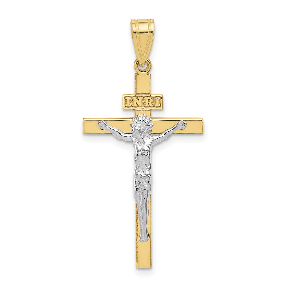10K Two-tone INRI Crucifix Pendant-WBC-10D3668