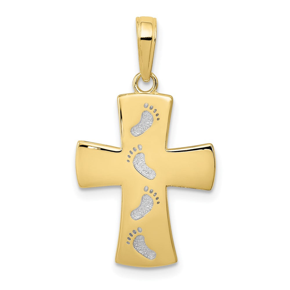 10K w/ Rhodium Cross W/Footprints Pendant-WBC-10C4430