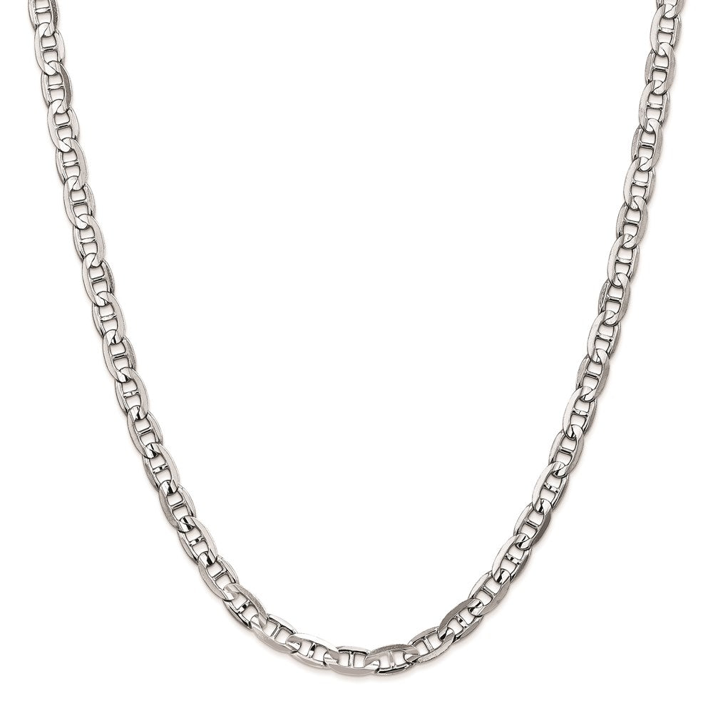 Material: Primary - Purity:14K *| - |* Finish:Polished *| - |* Length of Item:24 in *| - |* Plating:Rhodium *| - |* Chain Length:24 in *| - |* Chain Type:Anchor *| - |* Chain Width:5.25 mm *| - |* Clasp /Connector:Lobster *| - |* Feature:Solid *| - |* Manufacturing Process:Casted *| - |* Material: Primary:Gold *| - |* Width of Item:5.25 mm *| - |* Product Type:Jewelry *| - |* Jewelry Type:Necklaces *| - |* Sold By Unit:Each *| - |* Necklace Type:Chain Styles *| - |* Gender:Unisex *| - |* Profile Type:Concave *| - |* Material: Primary - Color:White *| - |* Manufacturing Process 2:Machine Made