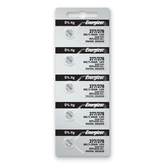 Pkg/(5) Type 377/376 Energizer Watch Batteries Tear Strip