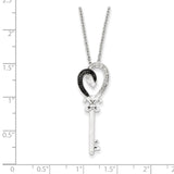 Sterling Silver Rhod Plated Black & White Diamond Heart Key Pendant Neck-WBC-QP2378