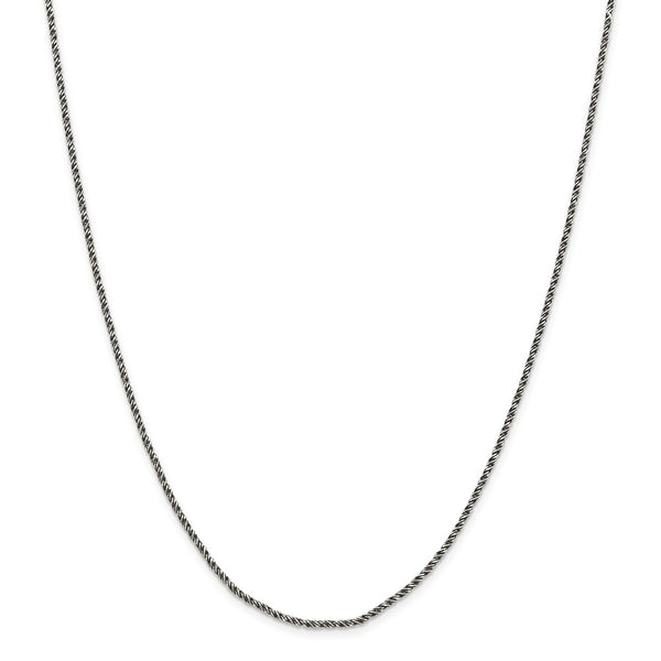 Material: Primary - Purity:925 *| - |* Finish:Polished *| - |* Length of Item:30 in *| - |* Plating:Ruthenium *| - |* Chain Length:30 in *| - |* Chain Type:Spiga (Wheat) *| - |* Chain Width:1.7 mm *| - |* Clasp /Connector:Lobster *| - |* Feature:Solid *| - |* Manufacturing Process:Machine Made *| - |* Material: Primary:Sterling Silver *| - |* Width of Item:1.7 mm *| - |* Product Type:Jewelry *| - |* Jewelry Type:Necklaces *| - |* Sold By Unit:Each *| - |* Necklace Type:Chains *| - |* Gender:Women's *| - |* Texture:Twisted *| - |* Material: Primary - Color:White *| - |* Plating Color:Black